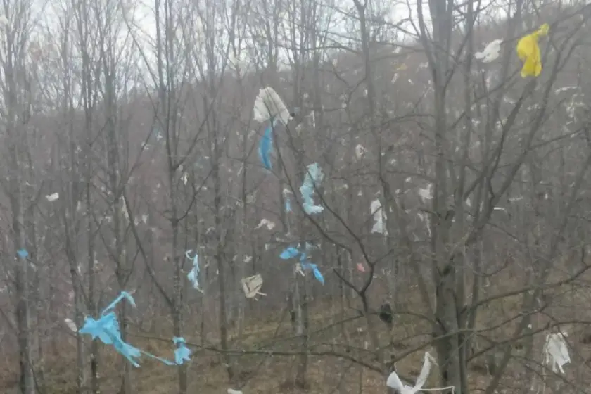 Şimdi de tesisteki poşet ve diğer çöpler ormana, tarım arazilerini tamamen doldurmuş durumda.