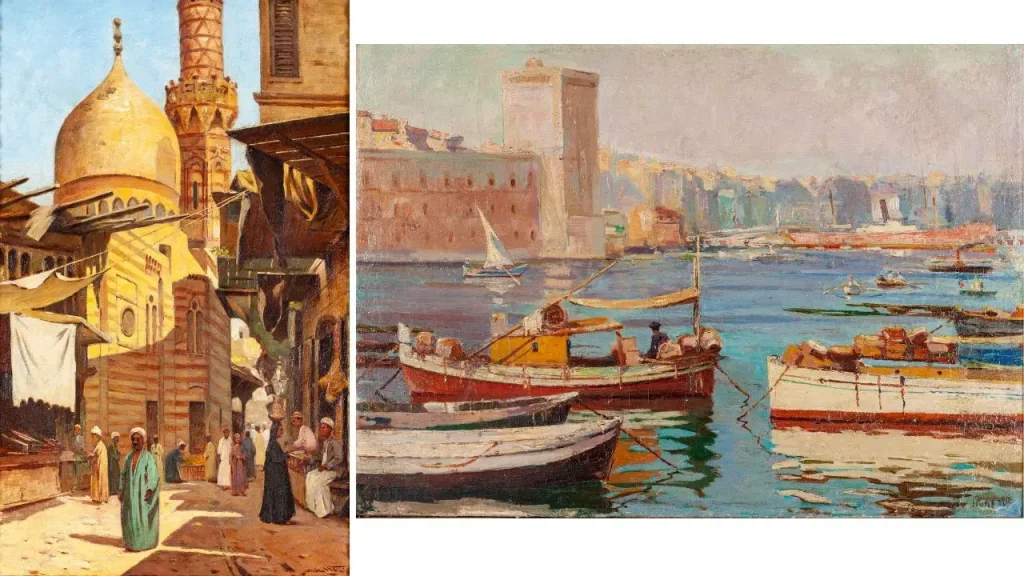 Sanatçının Mısır yılları ise serginin sürprizli bölümlerinden. Bu dönem, Halil Paşa’nın resminde yeni bir ışık rejimi yaratıyor. Nil kıyılarında üretilen peyzajlar, İstanbul’daki su temasıyla benzerlik kurarken, yerel mimari ve gündelik yaşam sahneleriyle farklı bir renk skalasına açılıyor.