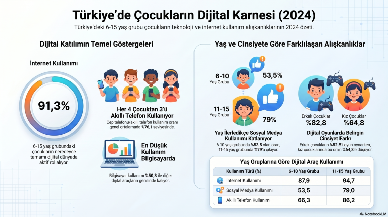 Türkiye’de çocukların bilişim teknolojilerini kullanım oranları 2024 yılında yüksek seviyelere ulaşırken, yaş grubu ve cinsiyete göre dikkat çekici farklılıklar ortaya…